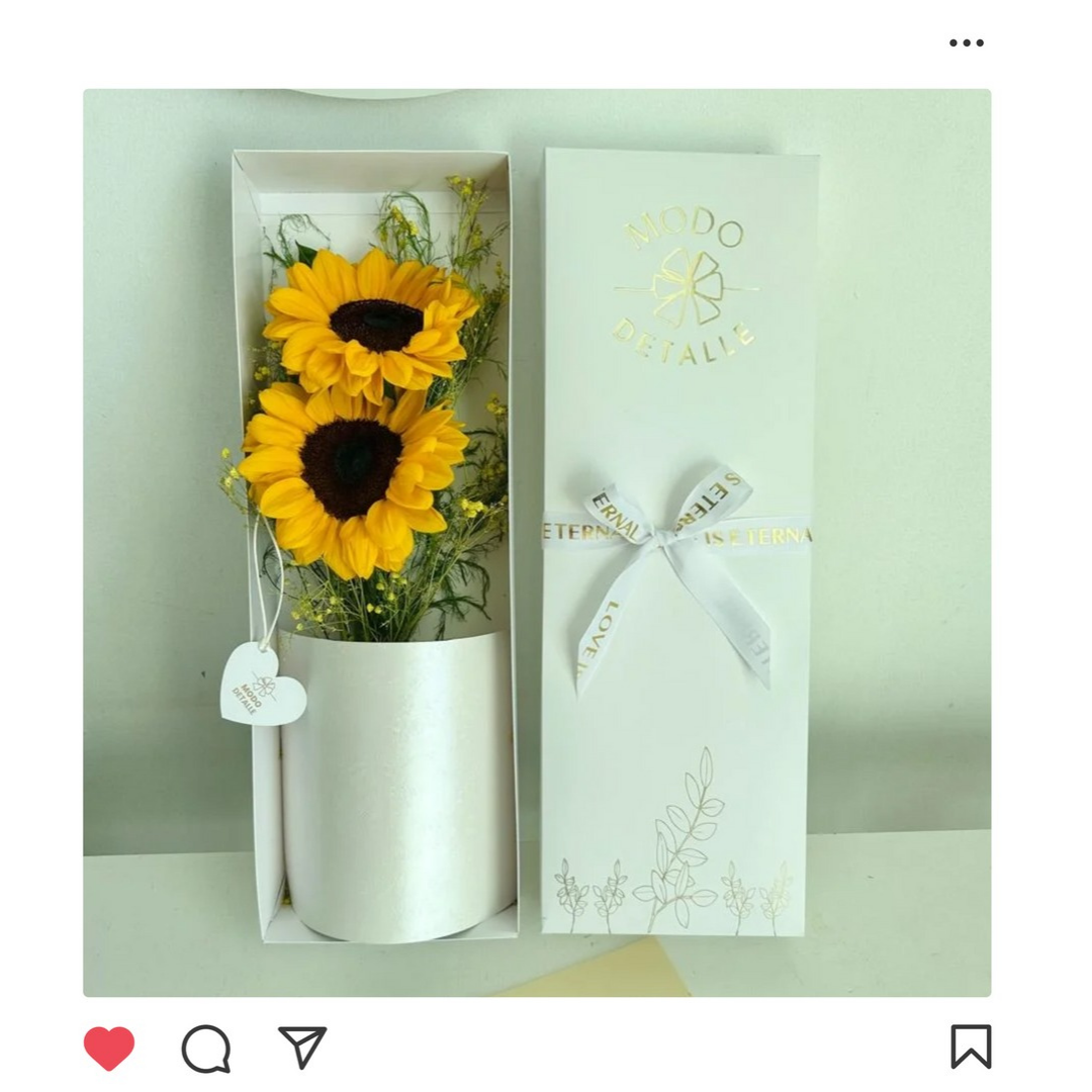 2 girasoles con esparragos La caja mide
